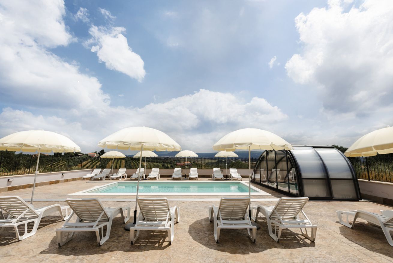 Surrounded by the lush greenery of the Viterbo countryside, Villa Monterazzano is the ideal choice for those who wish to enjoy the wellness and tranquility of nature without giving up the convenience of nearby services. The villa is located just 15 minutes from the historic center of Viterbo, one of the best-preserved medieval cities in Italy, allowing easy access to monuments, ancient quarters, and renowned thermal facilities.