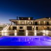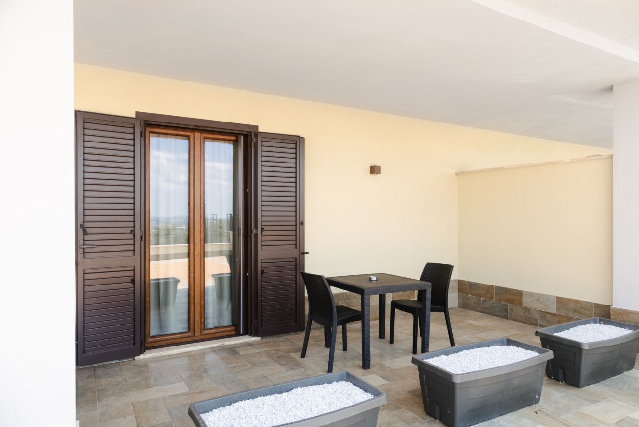 The property extends over a vast 6-hectare estate, surrounded by olive trees and an open panorama that guarantees absolute privacy. The design of the villa recalls Mediterranean style, with a tiled roof, dark wooden shutters, and elegant, harmonious architectural lines. Outdoors, large paved areas and a spacious covered porch with a dining table invite guests to enjoy convivial moments and al fresco meals immersed in the quiet of the countryside.