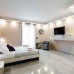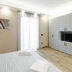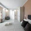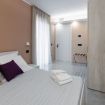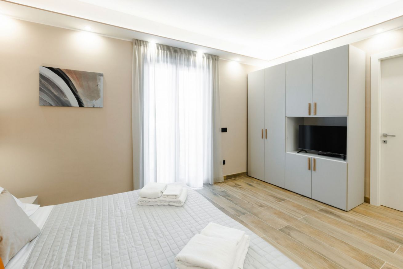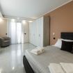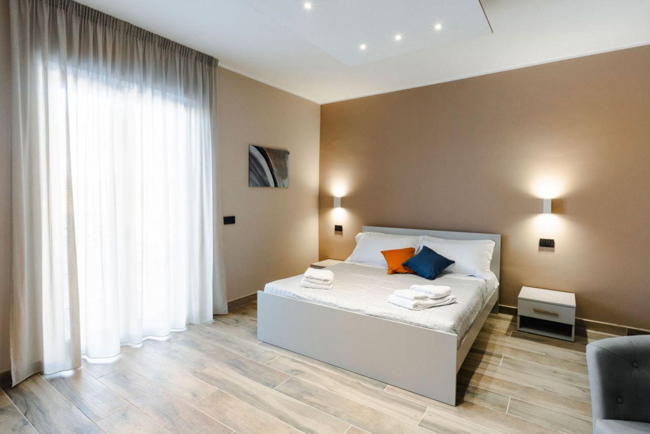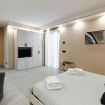 - Bedroom 5 (36 sqm - for 2 people, 1° floor): A spacious and sophisticated room featuring a double bed and a private bathroom complete with shower and hot tub (for 1 person). The sleeping area and bathroom are separated by a private corridor, offering enhanced privacy. The 10 sqm private terrace, furnished with table and chairs, offers an exclusive space to relax outdoors.
