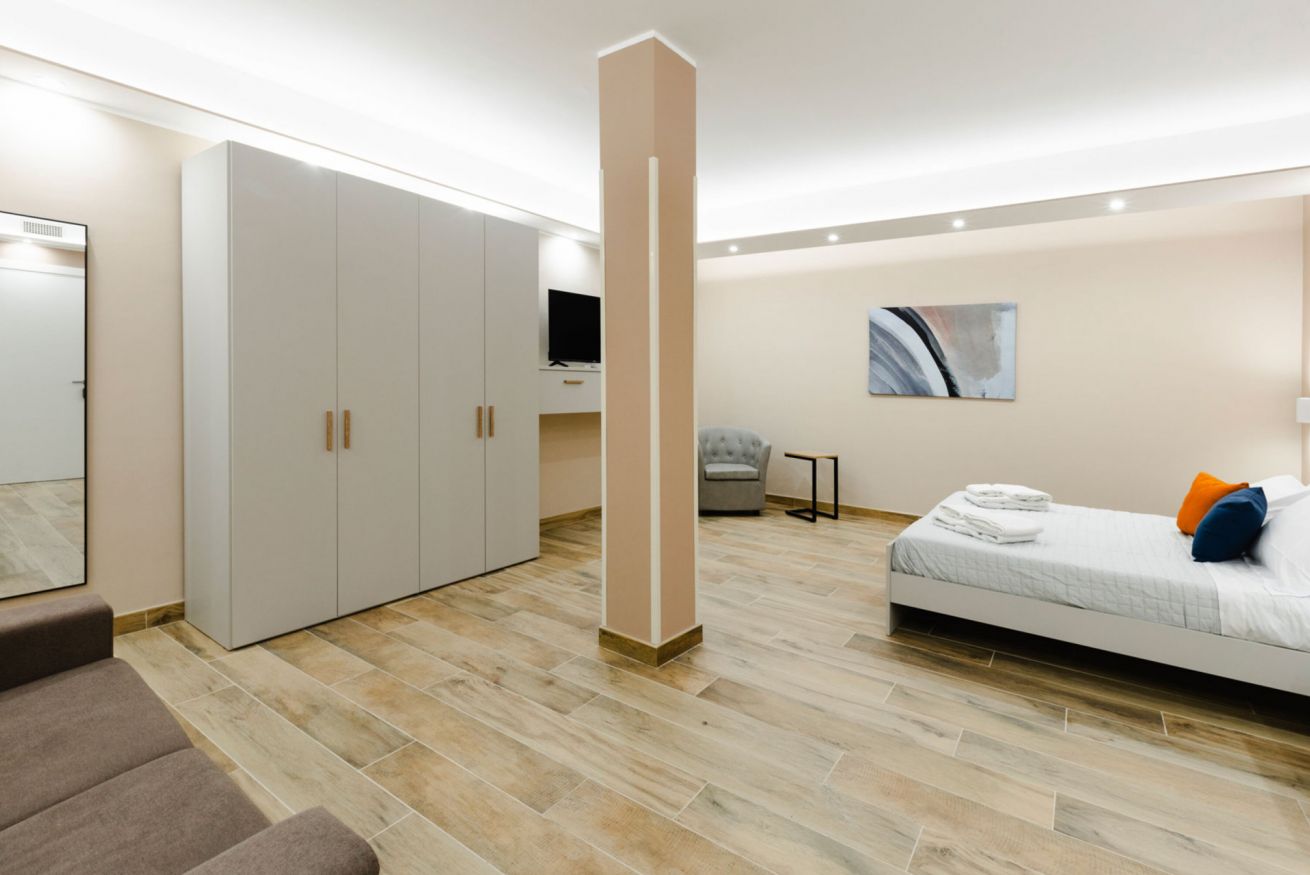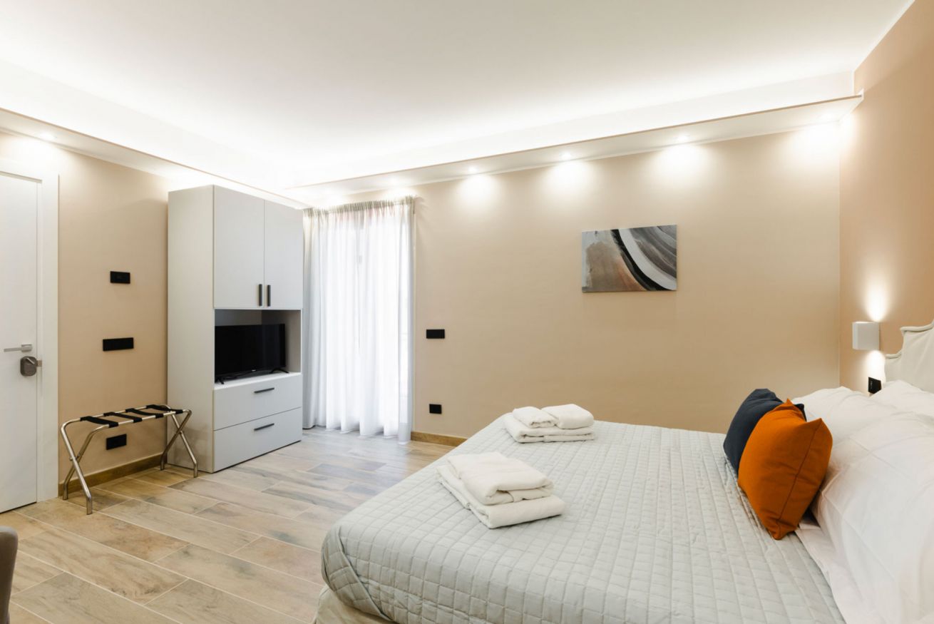 - Bedroom 8 (20 sqm - for 2 people, 1° floor): Furnished in a contemporary style, it features a comfortable double bed and a private ensuite bathroom with shower. Although it does not have a traditional bidet, it offers a handheld bidet spray for personal hygiene, ensuring maximum convenience.
