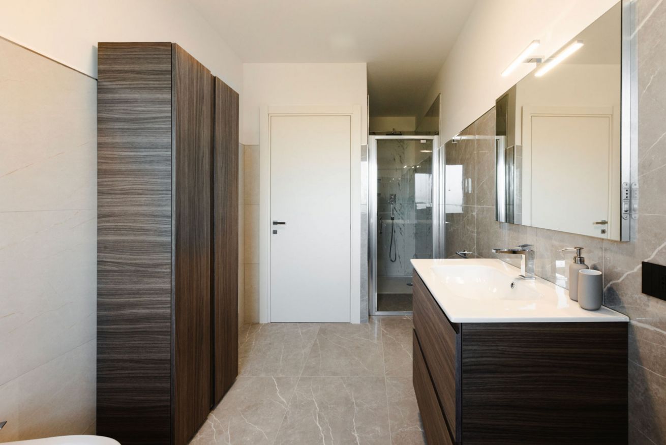 Villa Monterazzano is spread over 2 floors and can accommodate up to 17 guests. It has 8 bedrooms and 8 bathrooms. Each bedroom is designed to offer maximum comfort and convenience. You will find a 32-inch tv with national and international channels, window screens, a spacious wardrobe, and a safe to securely store your personal belongings. A hairdryer, fast Wi-Fi, and a modern underfloor heating and cooling system with ducted dehumidification ensure a perfect indoor climate in any season.