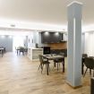 To complete the experience, guests can enjoy several common areas designed for daily comfort: on the 1st floor, there is a bright living room with a large corner sofa and the reception area, perfect for reading, relaxing, or enjoying a peaceful moment.