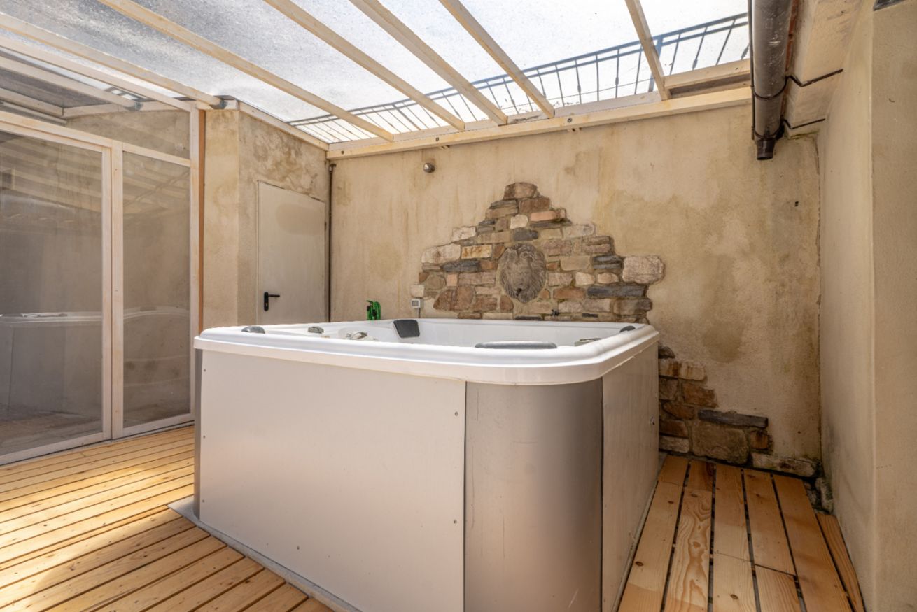 Vicino alla piscina si trovano una vasca idromassaggio esterna riscaldata e una sauna, con doccia adiacente. L’accesso a entrambe è disponibile con un supplemento.