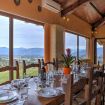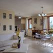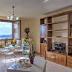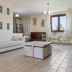 Piano terra: Il piano terra è formato da una grande zona giorno, circondata da ampie vetrate e porte-finestra che danno accesso sul patio coperto e giardino. La zona giorno è arredata con 4 divani (compresi 2 divani letto matrimoniali), camino, tv e tavolo da pranzo in legno per 10 persone. A seguire una moderna cucina, attrezzata con: piano cottura, tavolo da pranzo per 4 persone, macchina da caffè, forno, frigorifero, microonde, tostapane e lavastoviglie.