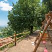 Salendo al piano superiore, un'altra terrazza ospita un tavolo da ping pong, mentre al livello più alto del giardino è stata predisposta una piccola area giochi per bambini con altalena e casetta.