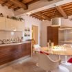 Piano terra: Attraverso la lunga terrazza si accede al piano terra che ospita una spaziosa e luminosa zona giorno open space, arredata con: tavolo da pranzo, tv satellitare, divano, portefinestre con accesso diretto all'esterno e grande cucina professionale con ampia dispensa sul retro. La cucina è completamente attrezzata con: forno, microonde, piano cottura, bollitore, macchina da caffè, frigo all’americana con macchina per ghiaccio, tostapane, friggitrice, lavastoviglie, bancone da bar e tavolo da colazione.