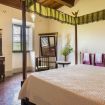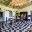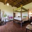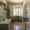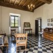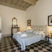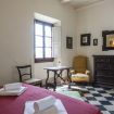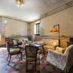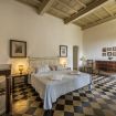 Primo piano: Il piano superiore, accessibile salendo delle scale, ospita la zona notte così formata: 1 matrimoniale a baldacchino e bagno ensuite con vasca, 1 doppia con bagno ensuite con doccia e 2 matrimoniali. Troviamo poi un bagno grande con vasca, una toilette, un guardaroba, un salotto-studio e un salottino da tè.