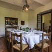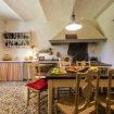 Piano terra: Il piano terra è dedicato alla zona giorno così formata: un soggiorno con divano e poltrone, una grande sala da pranzo con tavolo per 8-10 persone, una cucina abitabile attrezzata con: tavolo da colazione per 6 persone, fornelli, caminetto, macchina da caffè, tostapane, forno e frigorifero. A seguire troviamo un ampio studio-biblioteca, una lavanderia e una dispensa con stireria (asse + ferro da stiro).