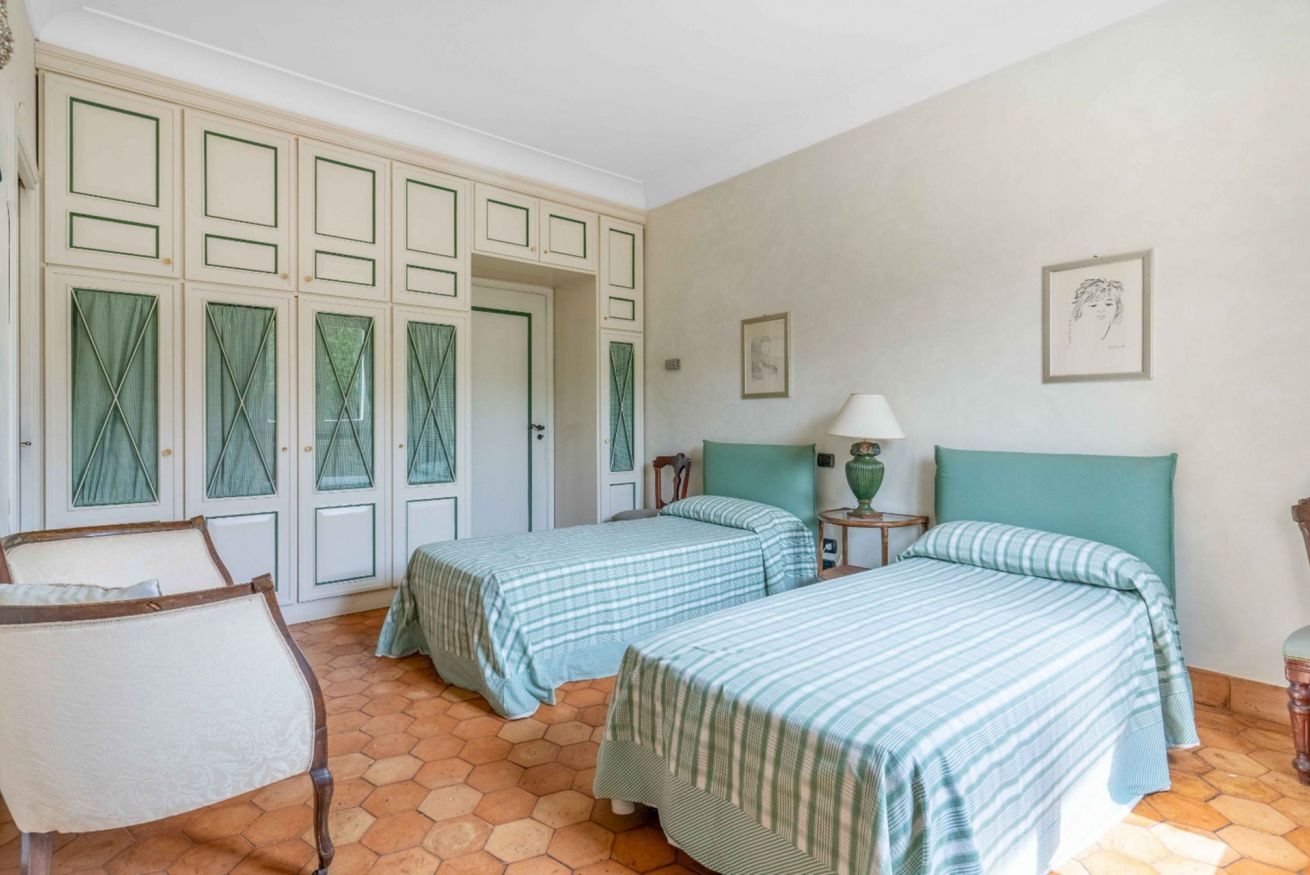 Piano terra: Al piano terra troviamo delle eleganti e luminose zone giorno, tra cui un ampio soggiorno con camino, una sala da pranzo, un salone doppio con un altro camino e una cucina abitabile. La cucina è completamente attrezzata con: tavolo da pranzo, tv, forno, fornelli, frigorifero, macchina da caffè, tostapane e lavastoviglie.