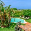 Inside the garden there is a beautiful round-shaped pool, open from April to November, and equipped with sun loungers, outdoor shower, and gazebo with lounge area.
