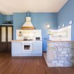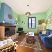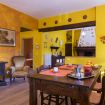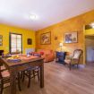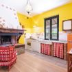 Second apartment: The second apartment is situated on the first floor of the villa, and consists of a lovely living room, furnished with sofa, armchair, tv, and a rustic stone-and-wood fireplace. Then you will find a large kitchen, equipped with: electric oven, stove, refrigerator, microwave, toaster, coffee machine, and dining table for 4-6 people.
