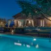Both the kitchen and the living room have French windows that allow direct access to the garden with gazebo and pool.