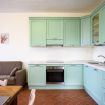 The 1st apartment consists of: a living area with tv, sofa, fireplace, dining table and kitchenette, two bathrooms with shower, and 4 double bedrooms.