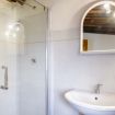 The upper floor, accessible via a spiral staircase, houses a twin bedroom and an ensuite bathroom with shower.