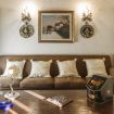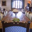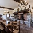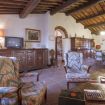 First floor: On the first floor there is a spacious living area, furnished with sofas, armchairs, fireplace and a long wooden dining table.