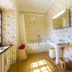 Ground floor: A rustic room with tavern, wooden dining table and stone fireplace welcomes us. Following is a guest bathroom.