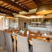On the ground floor, you are welcomed by an elegantly furnished living room with two sofas, armchairs, fireplace, satellite TV and video games. Following a large open space with a large dining table and a modern kitchen island, fully equipped with fridge, dishwasher, oven, microwave.