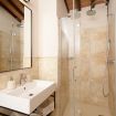 The first floor is dedicated to the sleeping area, consisting of 3 double bedrooms and 2 triple bedrooms (one double bed + one single bed), all with ensuite bathroom with shower. One of the bedrooms boasts a private entrance to the side of the building, with a small loggia overlooking the pool.