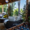 The property boasts a wonderful garden with lawn and several plants. You will also find a spacious porch, equipped with a table football, sofas, seats, and a dining table for 12 people for alfresco meals.