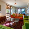 First floor: Upstairs you will find a large open-space living area, furnished with: sofas, fireplace, dining table, and modern kitchen (equipped with oven, microwave, hob, fridge, coffee machine, dishwasher and toaster).