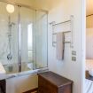 The floor is completed by 2 bathrooms (one with shower and one with bathtub), and 2 bedrooms divided as follows: 1 double and 1 bedroom with two French beds and a single sofa bed.