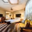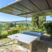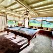 Under the porch you will find a delightful veranda, furnished with a pool table, a hammock, and a relaxation area (with wicker sofas and armchairs).