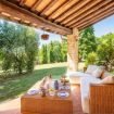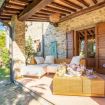 Sotto il patio troviamo una confortevole area lounge, ideale per rilassarsi godendo del paesaggio circostante.