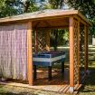 Moreover among the outdoor spaces you will find a children's swing with a basket, a ping pong table, and a foosball table, for the entertainment of adults and children.
