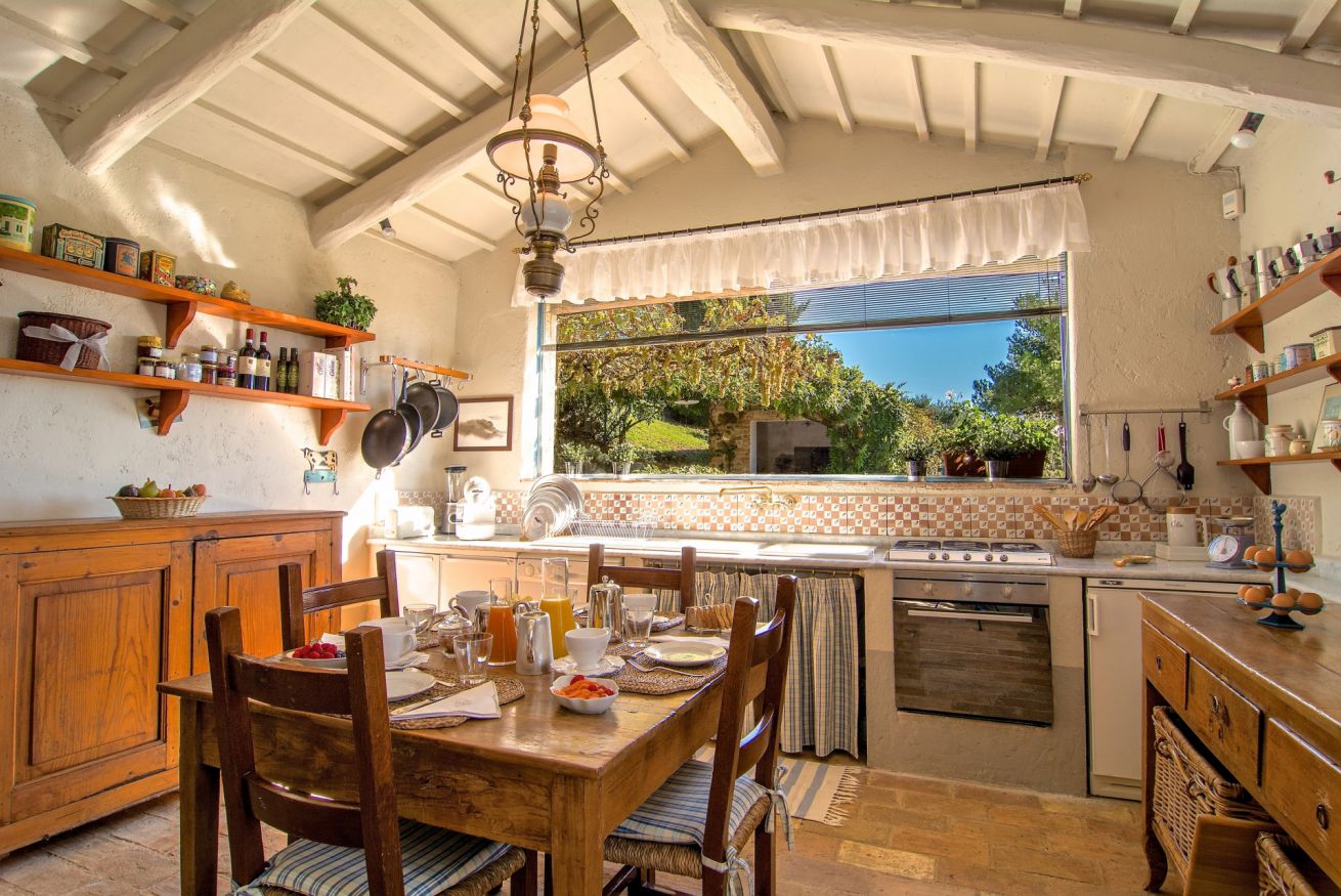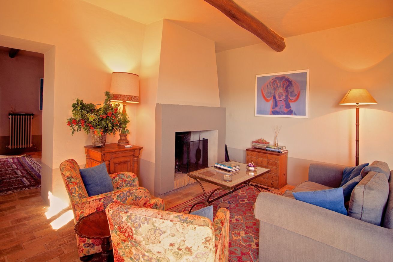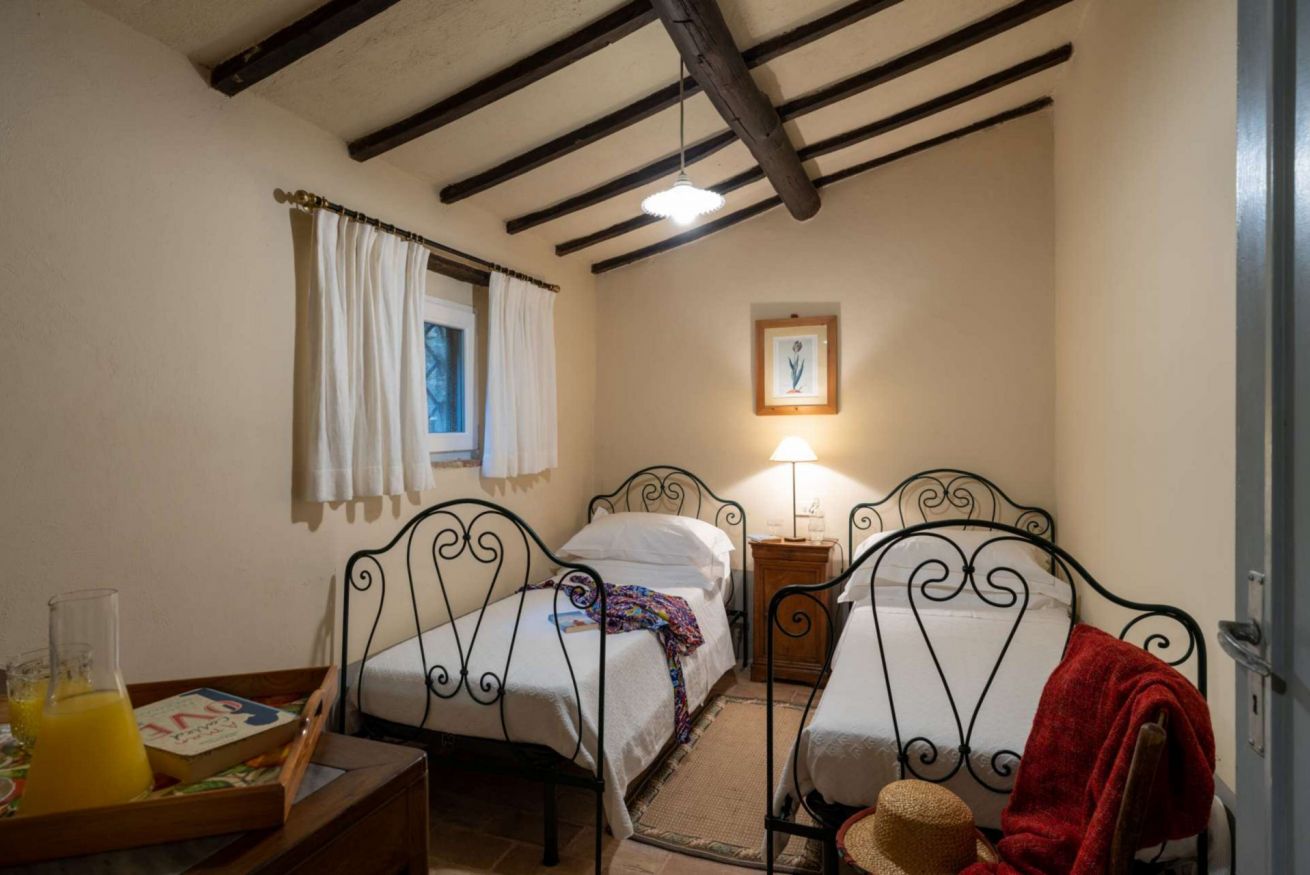Dalle scale dell’ingresso, composte da sei gradini, si accede a una raffinata sala lettura con comode poltrone e librerie, da cui si apre la sala giorno con un ampio disimpegno che collega le diverse aree della casa. Al piano, una camera con due letti singoli separati dispone di bagno ensuite; pur senza aria condizionata, mantiene un ambiente fresco e piacevole.