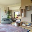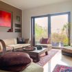 - a large sitting room with sofa and outdoor terrace overlooking the garden;
