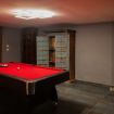In the basement you will find a large gym with exercise equipment and a billiard table.