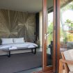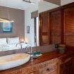 External suite: Within the garden is an external suite, separate from the villa, and consisting of a double bed, a sofa, and an ensuite bathroom with shower.
