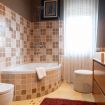 - a bathroom with bathtub (between the two double bedrooms).