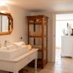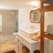 - a double bedroom with ensuite open space bathroom (with shower), and view of the garden and pool;