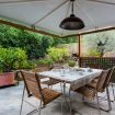 All'interno del giardino privato si collocano 2 gazebi in legno: uno attrezzato per pranzare/cenare all'aria aperta con barbecue e l'altro adibito ad area relax con divano, poltrone e tavolino.