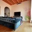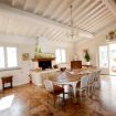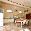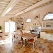 Piano terra: Il piano terra ospita una grande e luminosa zona giorno, elegantemente arredata con: divani, tavolo, caminetto decorativo (non utilizzabile) e tv. Proseguendo troviamo un'ampia cucina abitabile dotata di: forno, lavastoviglie, frigorifero grande con freezer e cantina vini, microonde, frullatore, tostapane, macchina da caffè, fornelli, caminetto decorativo (non utilizzabile), un tavolo da pranzo per 14 persone. Sia il soggiorno che la cucina hanno un accesso diretto sul cortile esterno.